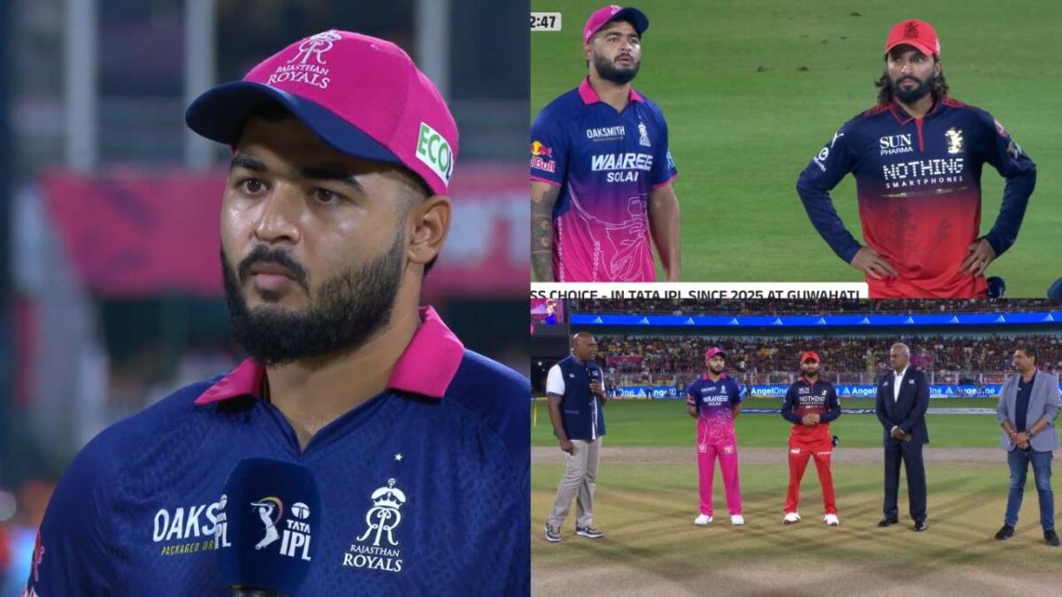 RCB vs RR: आईपीएल 2026 में आज गुवाहाटी के मैदान में इस आईपीएल की टॉप टीमें रॉयल चैलेंजर्स बेंगलुरु और राजस्थान रॉयल्स के बीच मुकाबला खेला जा रहा है. अभी तक यह दोनों टीम बेहतरीन प्रदर्शन किया है. अब दोनों (RCB vs RR) तगड़ी टीम का मुकाबला होने वाला है. RCB vs RR दोनों टीमें ने पिछ्ला मुकाबला जीत लिया है. वही इस मैच में कप्तान रियान पराग और रजत पाटीदार टॉस के लिए उतरे. और टॉस राजस्थान के नाम हुई. राजस्थान ने टॉस जीत कर पहले गेंदबाजी का चुनाव किया है. बता दें, दोनों टीम बेहतरीन फॉर्म में हैं. हालाँकि इस मैच में बारिश के वजह से प्रभावित रहा है. जिसकी वजह से टॉस होने में देर हुई.